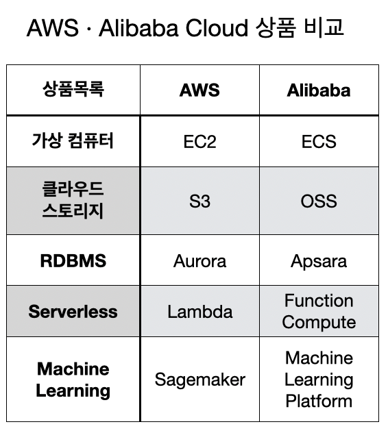또한, 알리바바는 AWS가 제공하는 대부분의 서비스를 런칭하고 있습니다.