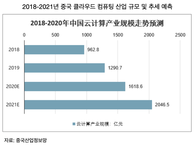 중국 클라우드 시장 상황: