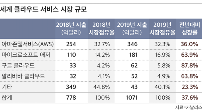 즉, 실제로 클라우드 시장이 가파른 성장을 하고 있다는 것을 위 자료를 통해 보여주고 있습니다.