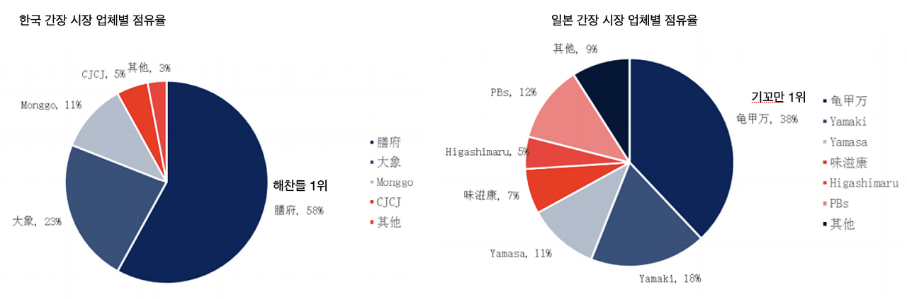 한국이나 일본의 간장시장은 포화상태여서 주가들이 시들시들한데,