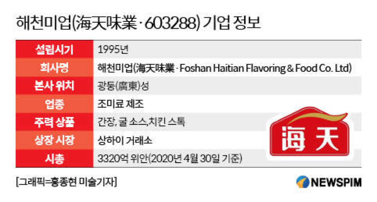 해천미업의 시가총액은 올해 4000억 위안 돌파(약 68조원)했는데,