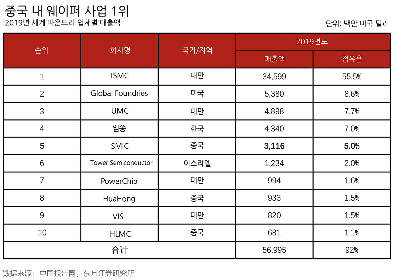 중국 내에서는 파운드리 1위를 하고 있으며, 세계 5위로 꽤나 규모가 있는 회사이죠.