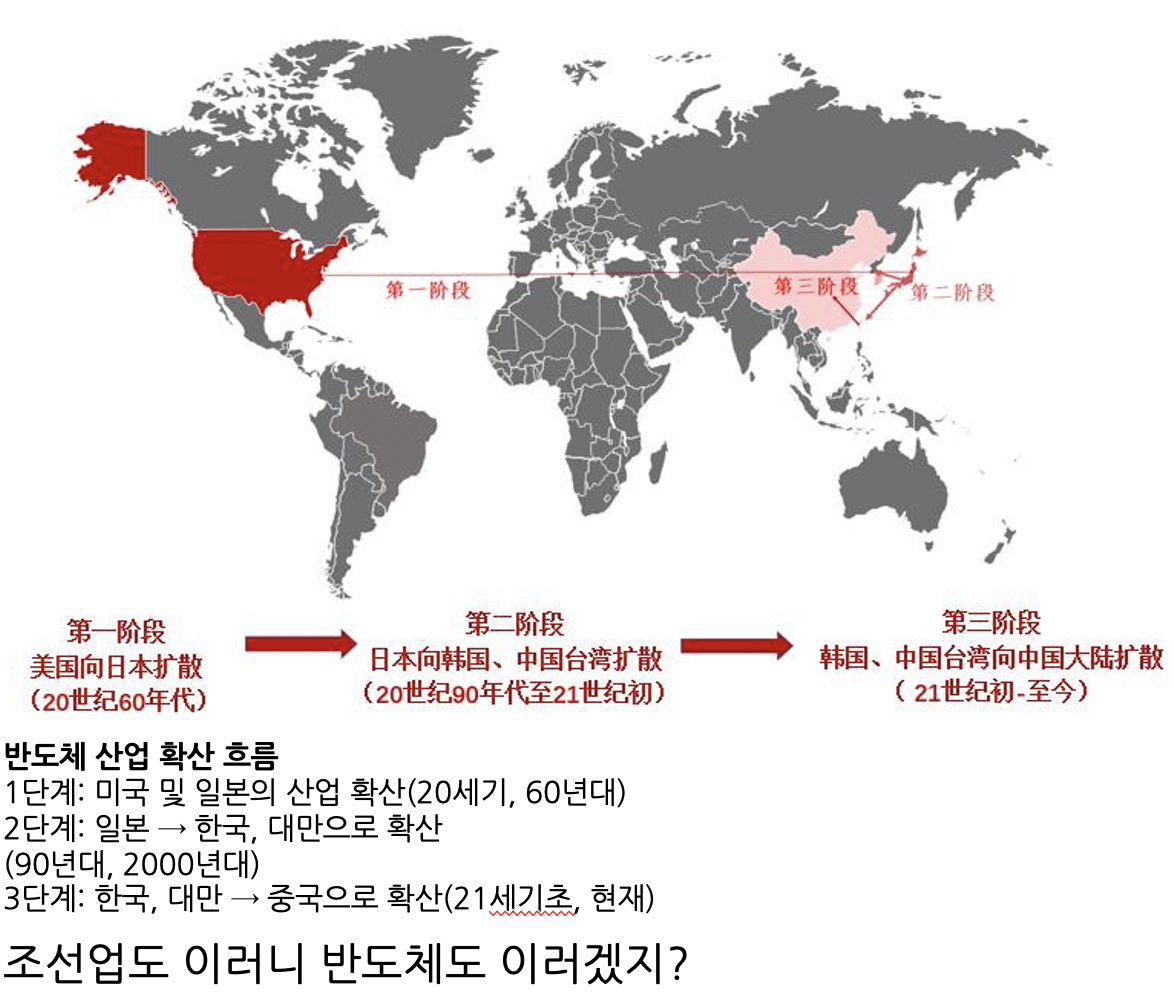 처음엔 유럽, 미국이 잡고 있었던 산업을 일본이 장악했으며, 이후 한국이 일본을 제치고, 결국은 중국이 같은 방식으로 한국을 넘어버렸죠.