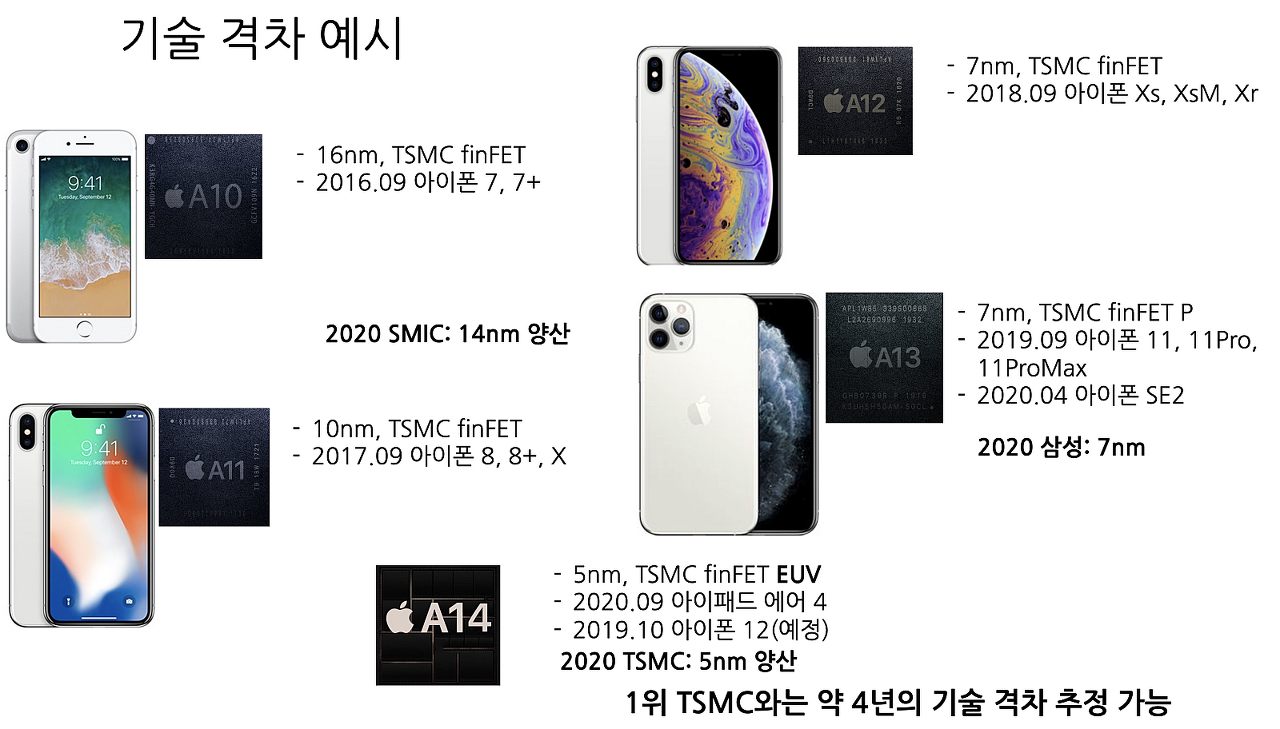 현재 SMIC의 기술 격차에 대한 간단한 예시-아이폰