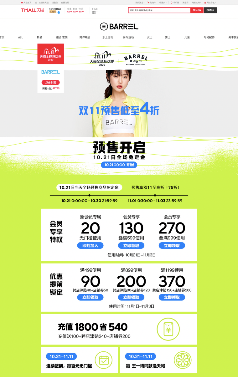 배럴 중국 매장: tmall, jd.com에서 barrel 또는 冲浪泳衣 검색