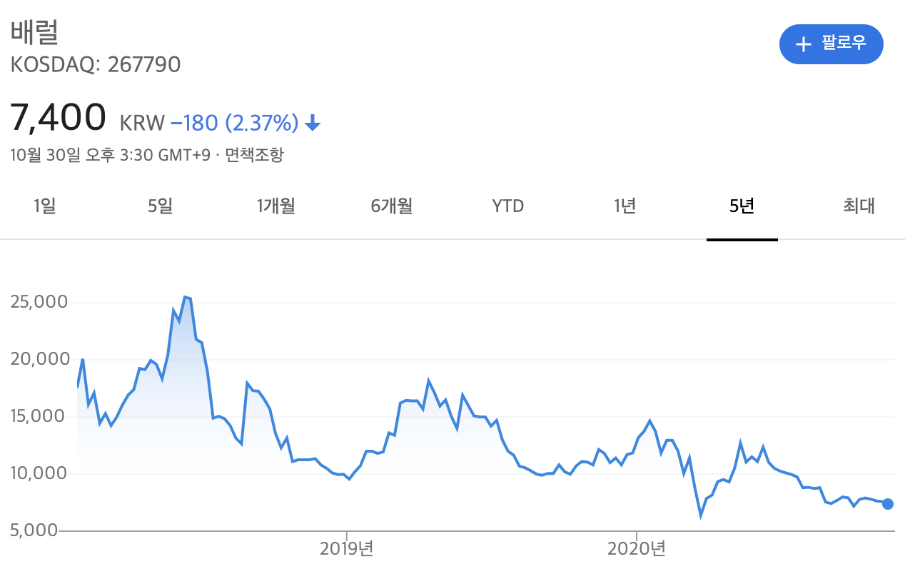 물론 올해(2020)는... 코로나 때문에 매출이 쪼그라들어 주가도 엄청 떨어졌습니다.