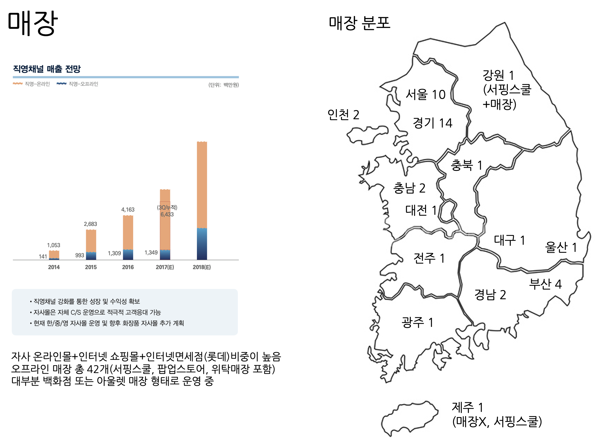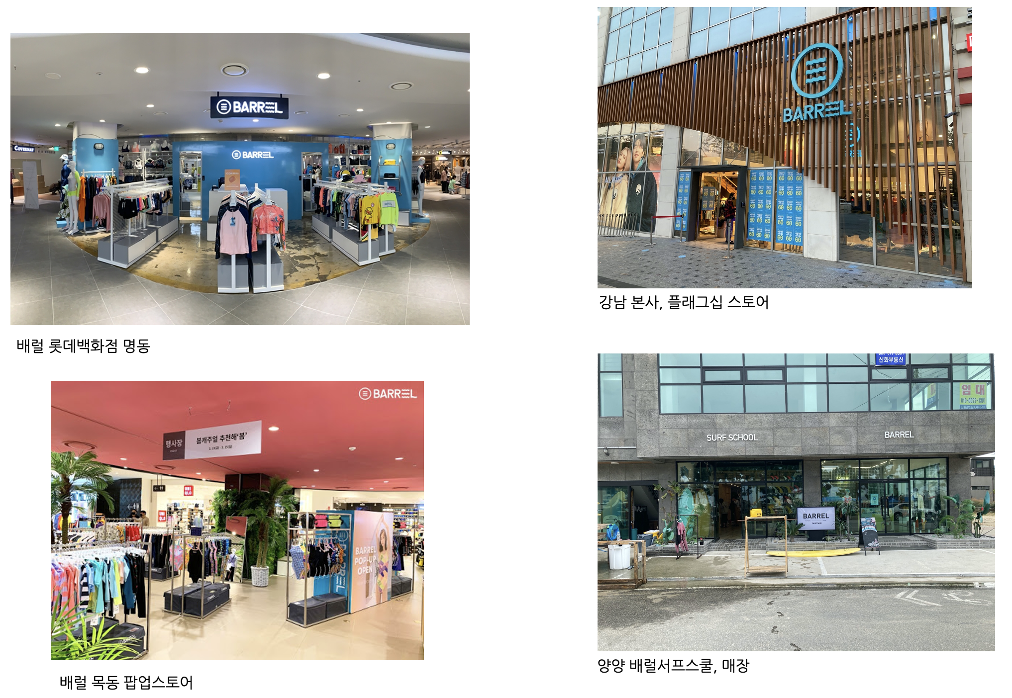 오프라인 매장은 강남의 본사 플래그십 스토어와 강원도의 서핑스쿨과 함께 있는 매장을 제외하면,