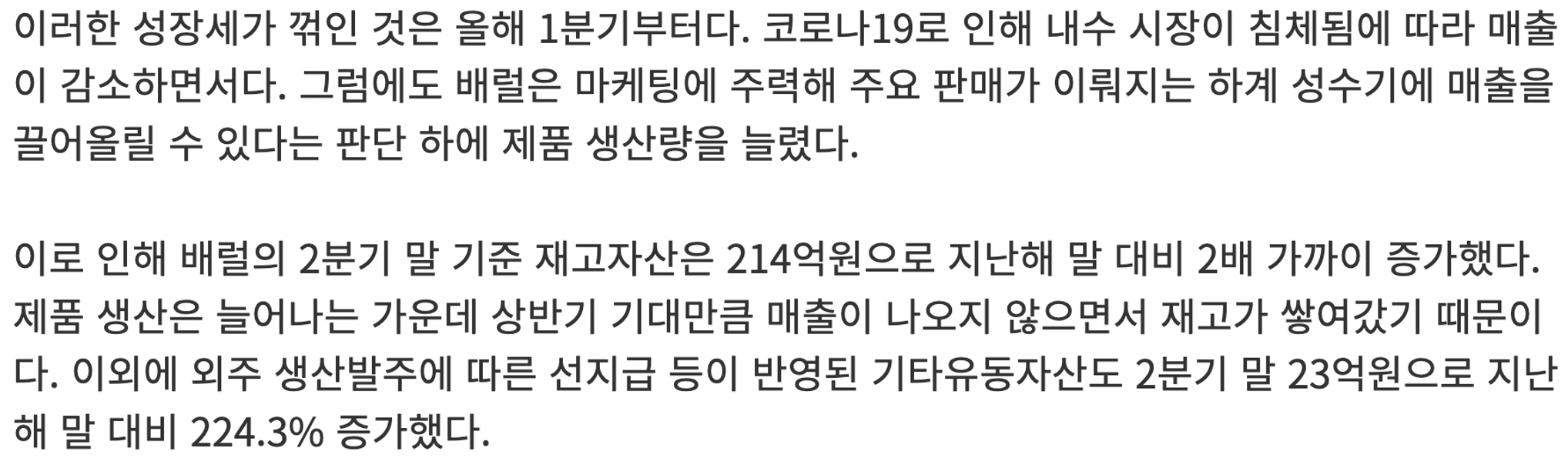 배럴 재고자산 관련 기사: https://www.thebell.co.kr/free/Content/ArticleView.asp?key=202008241215483440109435&svccode=00