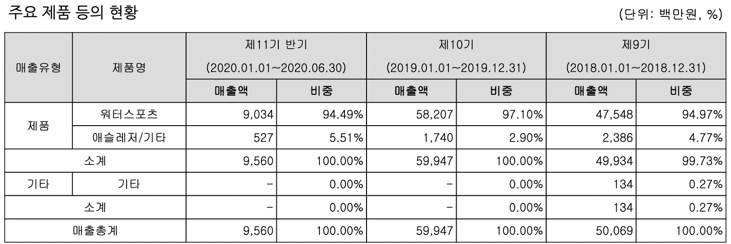 워터스포츠가 매출의 절대다수를 차지하는 것을 알 수 있습니다.
