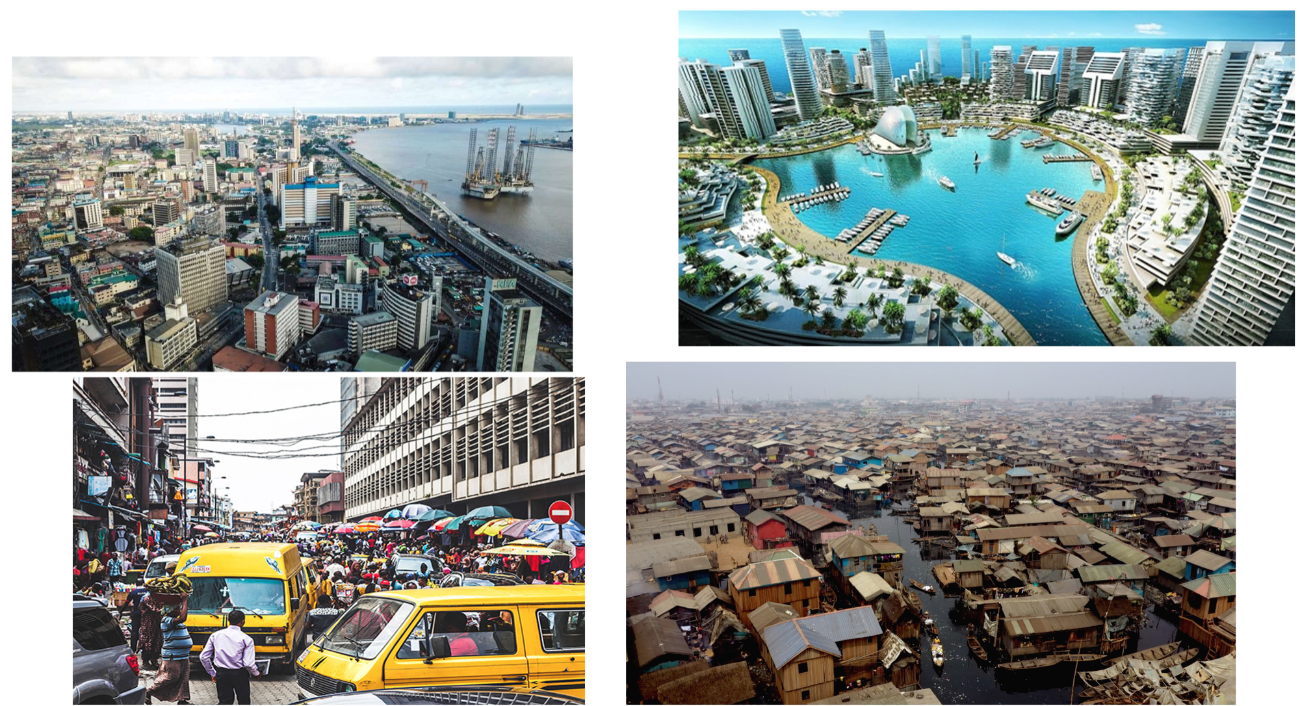 왼쪽 윗 사진이 라고스의 시내 사진이라고 보면 되겠습니다. 라고스는 오른쪽 윗 사진처럼 연안 지역에 신도시 개발을 추진중이나, 청사진처럼 계획대로 될지는 미지수입니다.