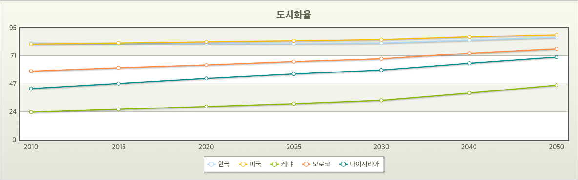 한국과 미국 비교 아프리카의 도시화율 상황입니다.