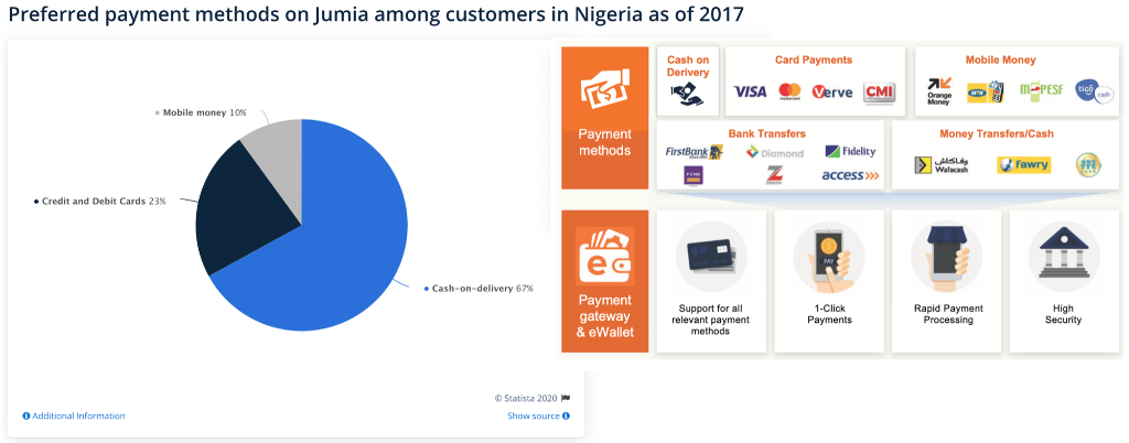 Jumia의 결제 방식 통계: https://www.statista.com/statistics/1139791/preferred-payment-methods-on-jumia-in-nigeria