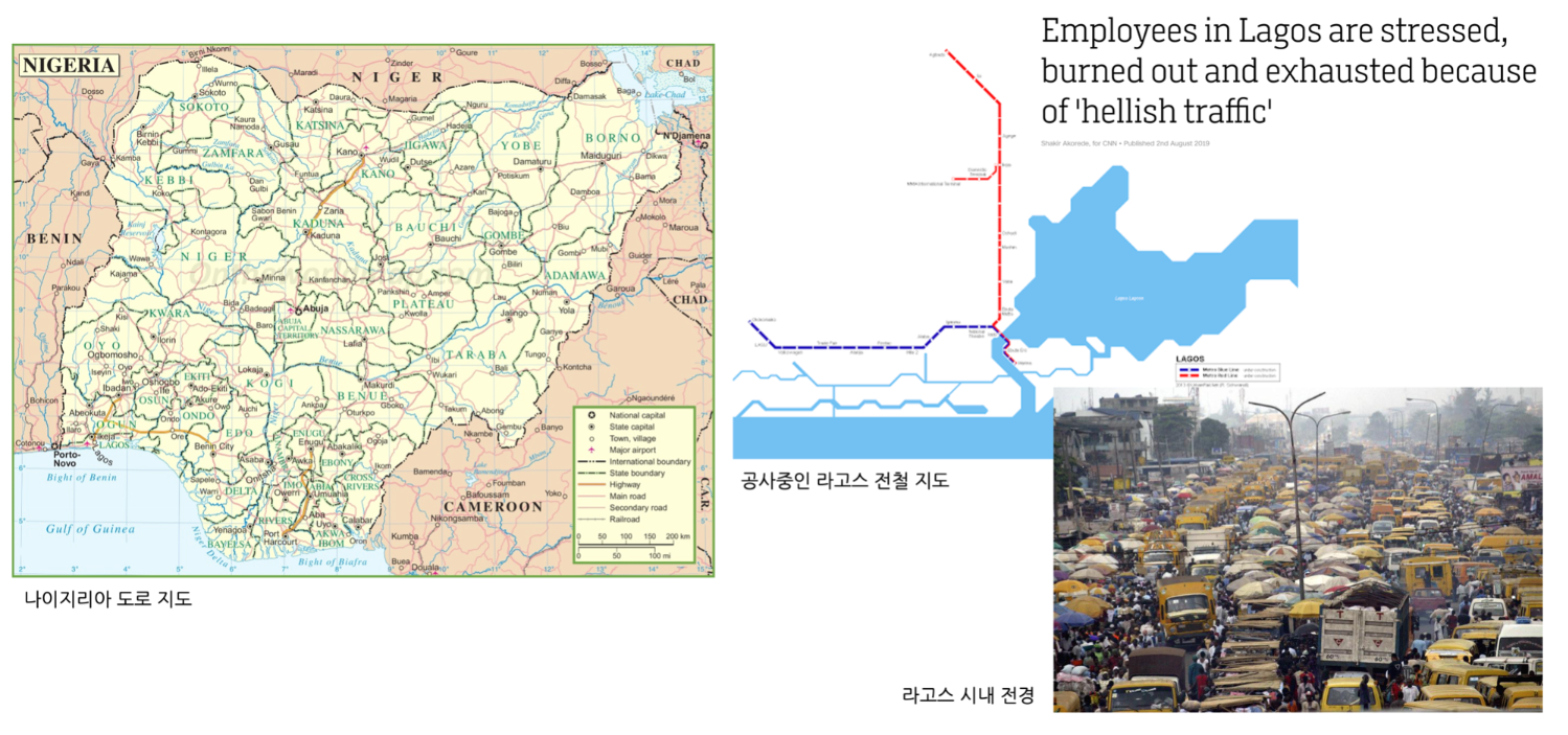 이 때문에 2020년 현재 라고스 사람들의 평균 출퇴근을 합친 소요시간은 약 4.2시간이라고 합니다. 도로에서 거의 2시간 반을 매일 날리는 셈이죠.