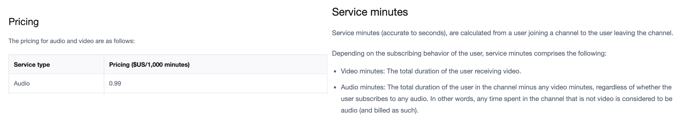 이를 1000명이 있는 방으로 환산한다면. 마이크를 켰는 지의 여부에 상관없이, 이 방은 1분당 0.99$를 청구한다고 보면 되겠습니다.